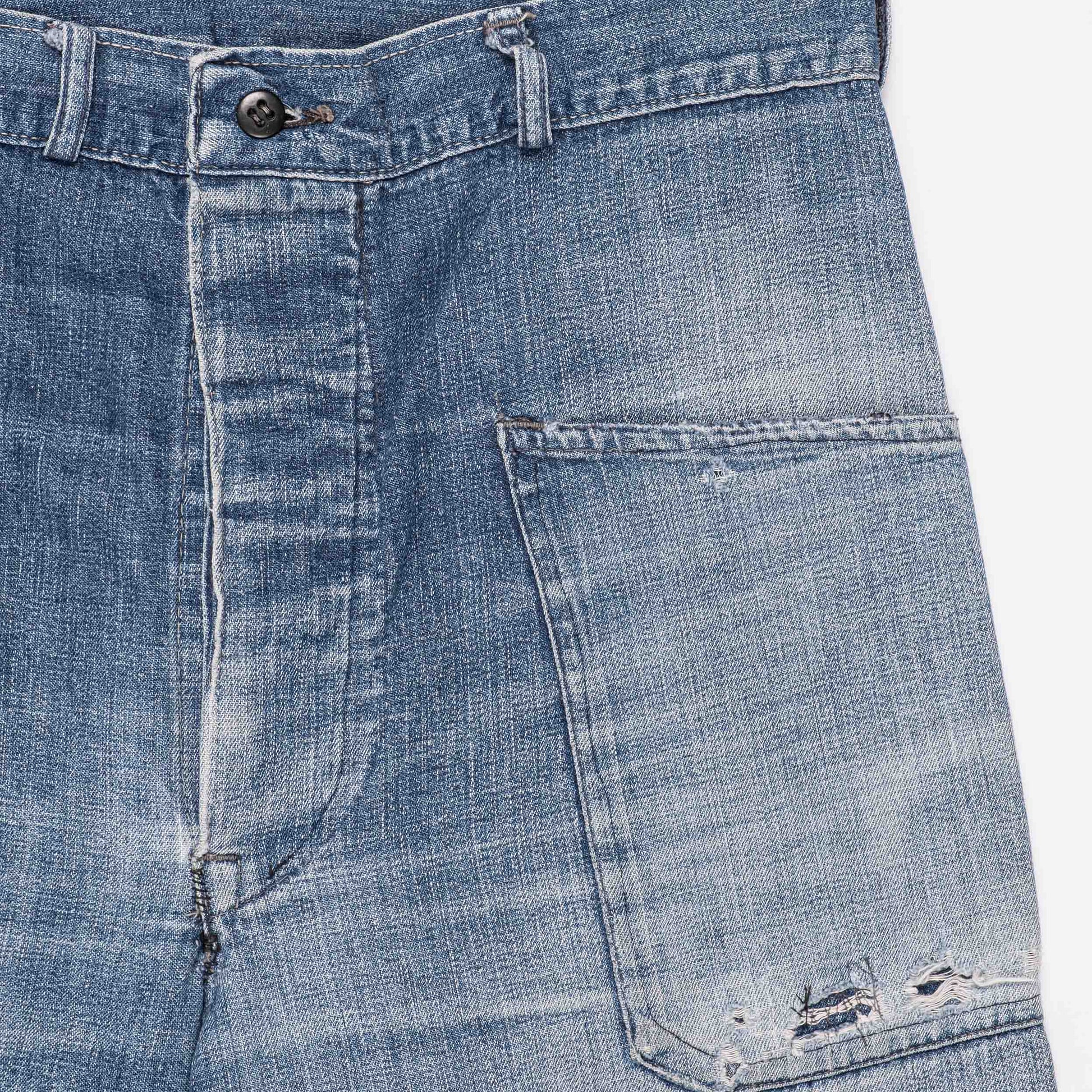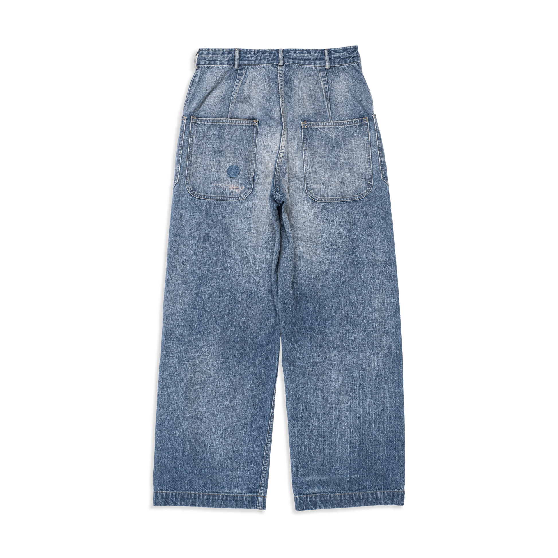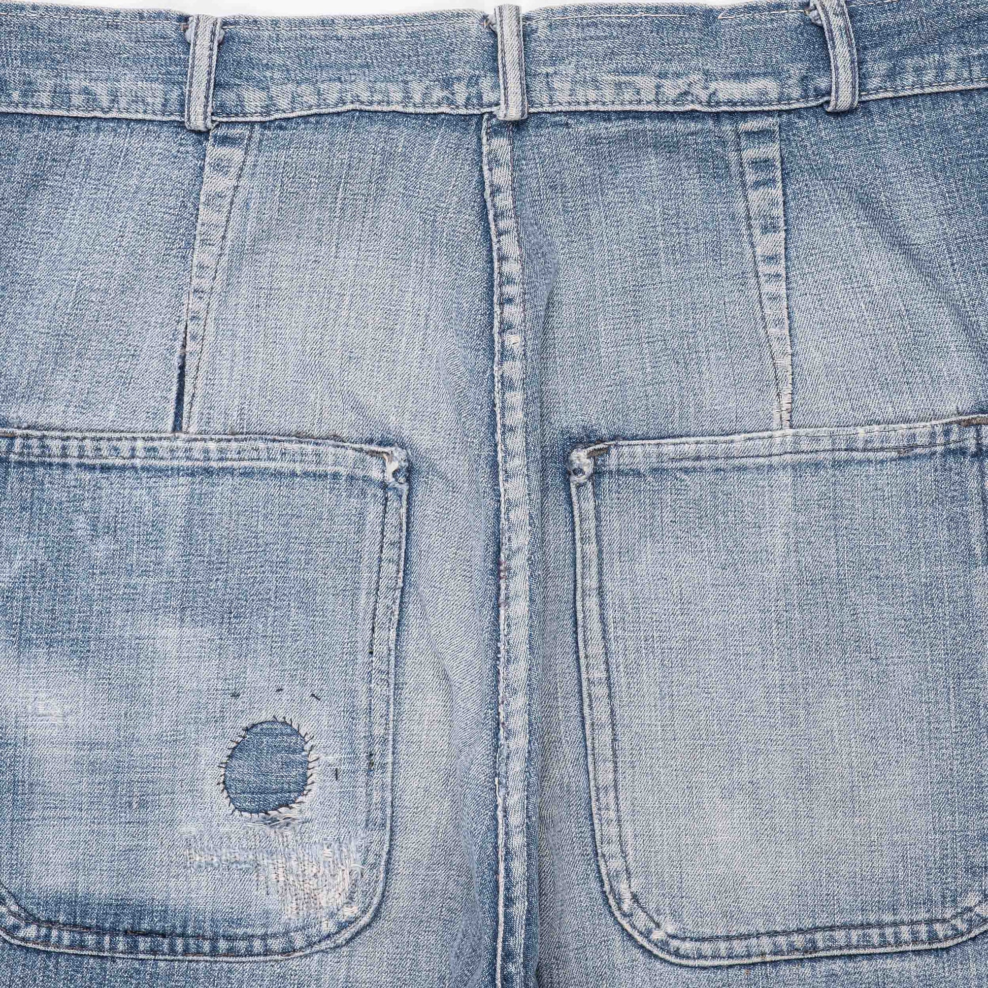 Channeling the spirit of 1940s Navy deck pants, our BRH-OV-1132 is a modern reinterpretation with authentic nods. We rewove the denim fabric to match the texture, maintaining faded details and repair patches reminiscent of the original. A hidden drawstring in the re-designed waistband adds a touch of contemporary flair to this vintage-inspired piece.