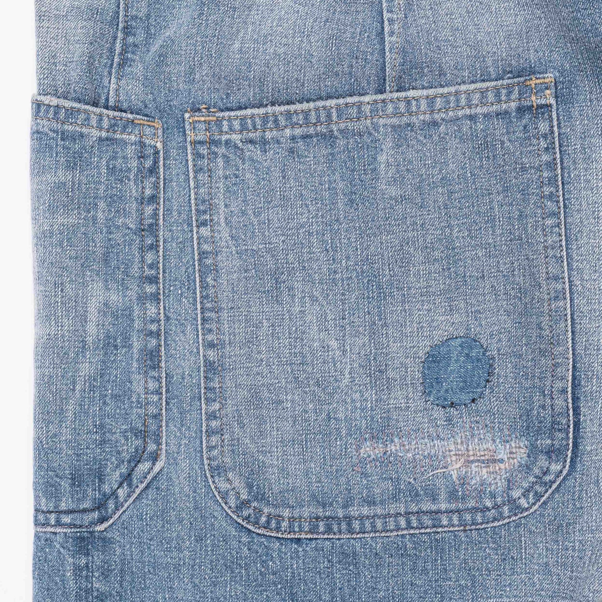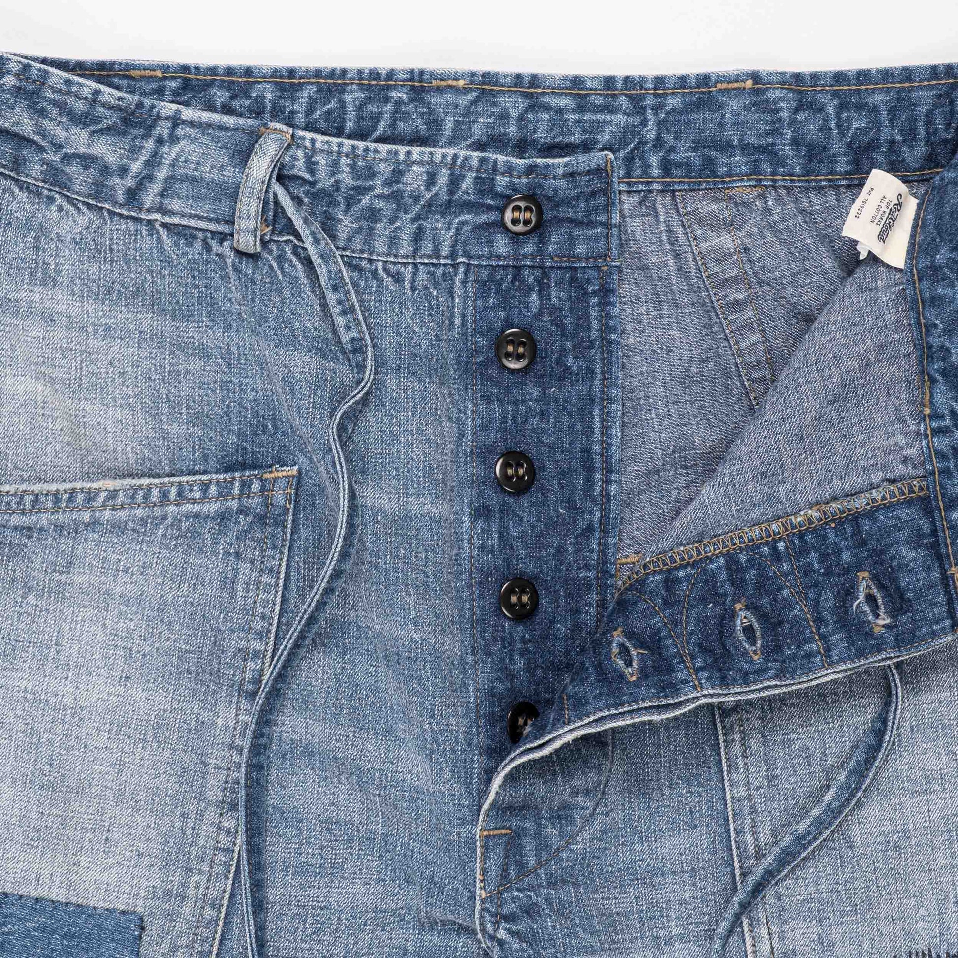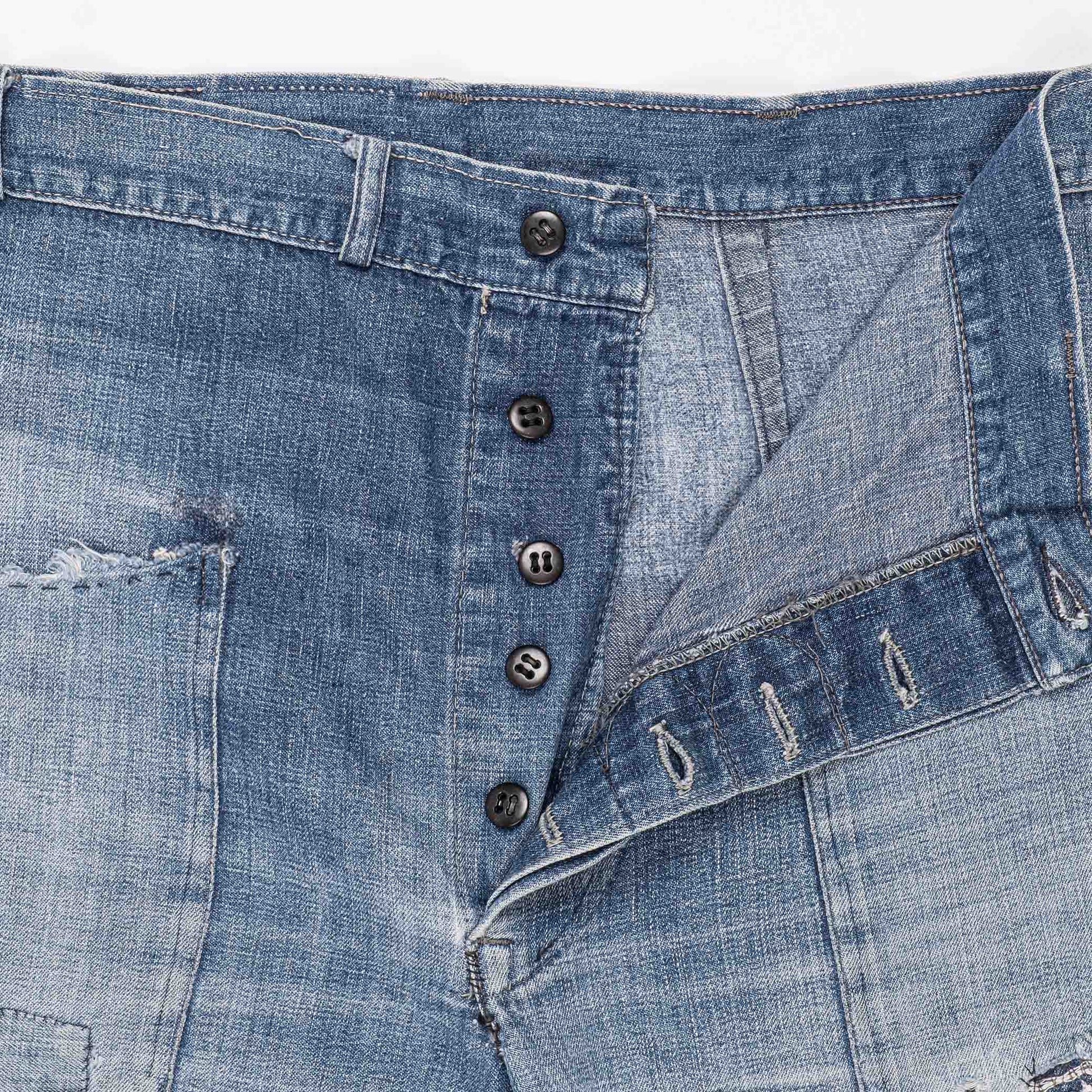 Channeling the spirit of 1940s Navy deck pants, our BRH-OV-1132 is a modern reinterpretation with authentic nods. We rewove the denim fabric to match the texture, maintaining faded details and repair patches reminiscent of the original. A hidden drawstring in the re-designed waistband adds a touch of contemporary flair to this vintage-inspired piece.